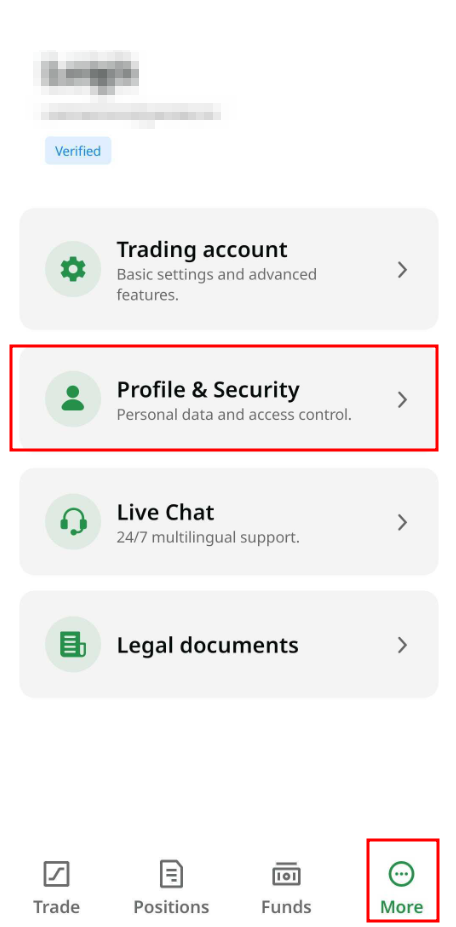 Open the “More” tab in the bottom menu and click on "Profile & Security":