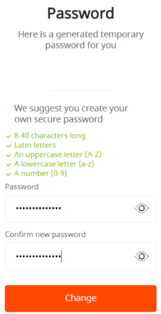 You will be shown a generated temporary password. You can continue using it, but we recommend you to create your password for additional security.
